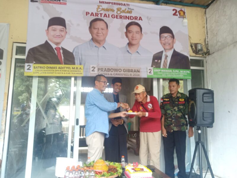 Sorotan Pena – Usep Wawan peringati HUT ke-16 Partai Gerindra secara sederhana di kantor pemenangan partai Gerindra dan Caleg Usep Wawan di Batu Sapi Kelurahan/Kecamatan Palabuhanratu Kabupaten Sukabumi yang sekaligus caleg nomor urut 02 dapil 1 Kabupaten Sukabumi, berharap partainya dapat menjadi yang terbaik bagi bangsa dan rakyat, Rabu (07/02/2024)